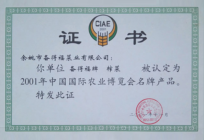 浙江備得福食品有限公司, 創建于1992年,是一家專業生產小包裝榨菜、泡菜等現代化農業企業,公司位 于美麗富饒,處處充滿商機和希望的開發熱土——杭州灣畔。滬杭甬高速公路、329國道在公司的南大門橫貫而過, 東臨深海大港——北侖港,西臨蕭山國際機場,北靠舉世矚目的杭州灣跨…【更多】